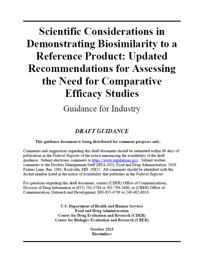 The U.S. Food and Drug Administration (FDA) has released an updated draft guidance, Scientific Considerations in Demonstrating Biosimilarity to a Reference Product, introducing new scientific recommendations that may significantly reshape biosimilar development strategies. The revised document clarifies when comparative efficacy studies may no longer be required, shifting greater emphasis toward advanced analytical similarity assessments, comparative human pharmacokinetic (PK) studies and robust immunogenicity evaluations. For manufacturers, these updates signal a meaningful opportunity to streamline development programmes—while also raising expectations for scientific justification and data quality.