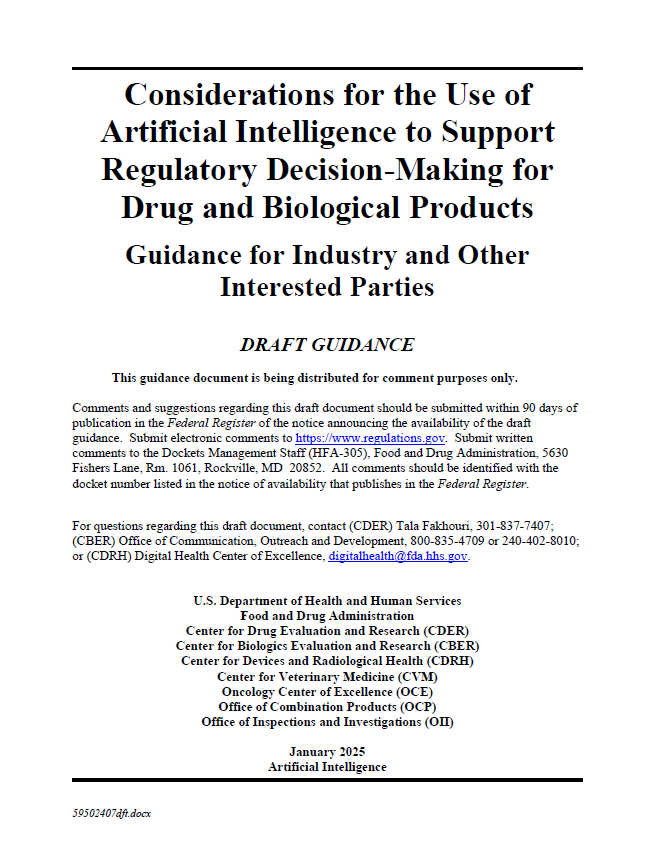 Notably, the guidance clarifies that it does not address AI applications related to drug discovery or operational efficiencies that do not directly impact patient safety or the reliability of clinical study results. It also encourages sponsors to engage with the FDA early in their development process to assess whether their AI use aligns with the scope of this guidance.