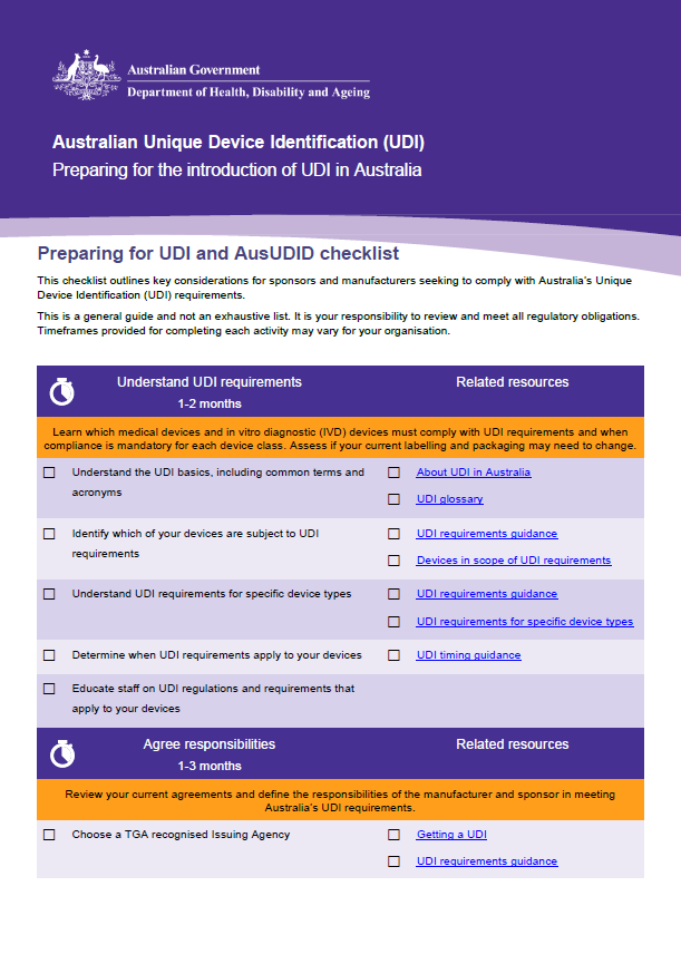 TGA publica lista de verificação para implementação do sistema UDI na Austrália