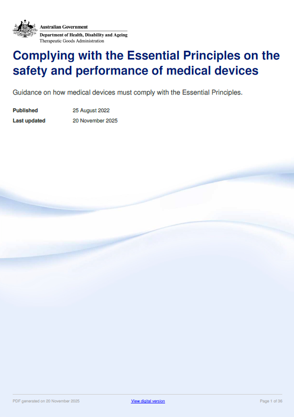 TGA Updates Guidance on Essential Principles for Medical Device Safety and Performance